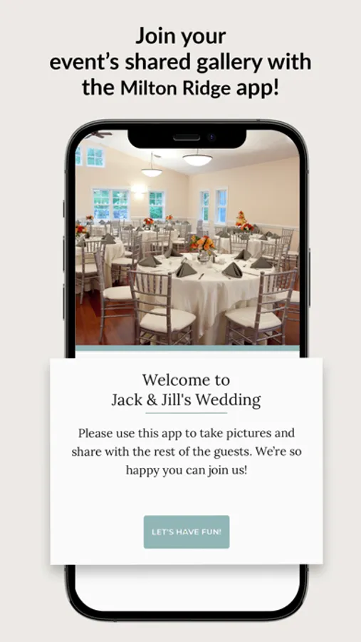 Welcome to the Milton Ridge App, now available on your smartphone! Our new app was created for everyone who attends an event at our venue. Snap photos and sign a digital guestbook to capture, view and share memories for the event you’re attending!