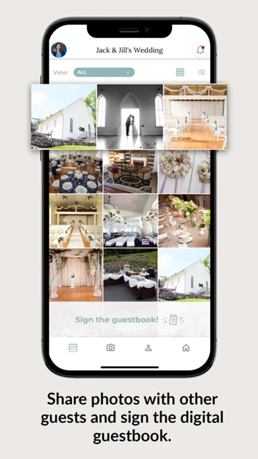 Scroll Through The Live Feed: Everyone attending the same event will have access to a shared gallery. Scroll through photos and guestbook notes uploaded by other guests while you’re there!