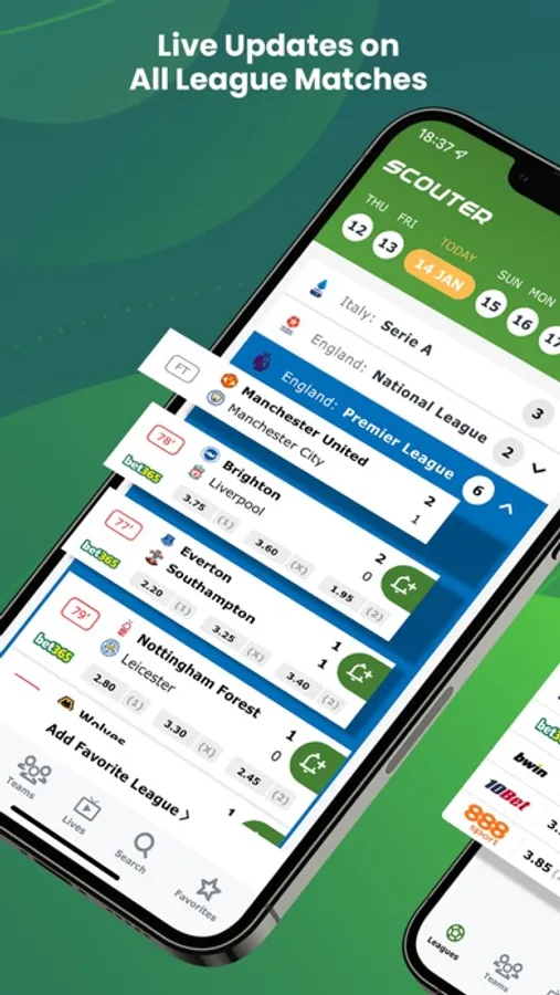 Stay updated with live Scores information with our Scouter – live score app, on Soccer matches from around the world. Our Football Live Score app provides you with access, to scores that football match timelines and comprehensive statistics. You'll never miss out on the happenings on the field of the football match.