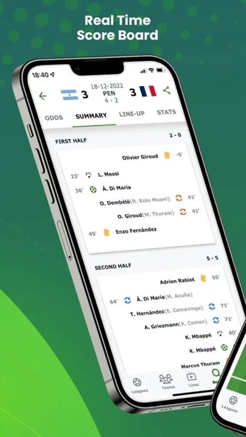 Stay up to date and get live soccer updates, with football match insights and with our Football Real-time Score app that provide an understanding of the Soccer game. Get Football information, on possession percentages shot counts, player statistics, and more giving you an overview of how the Soccer match's progressing.