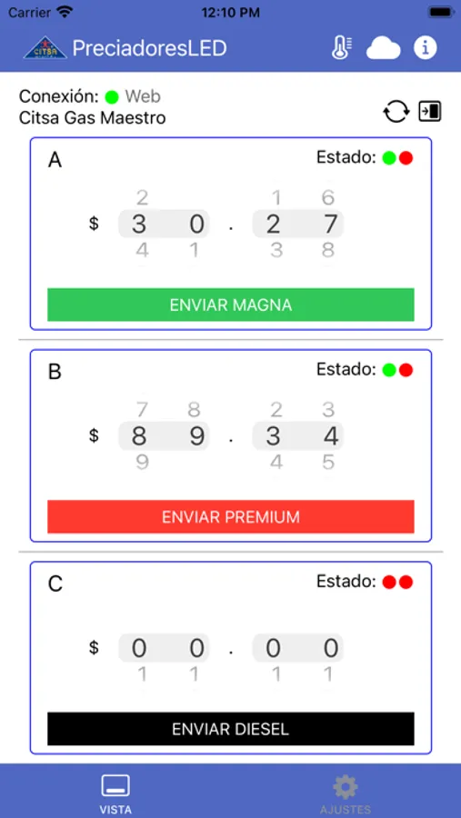 Controle sus tableros PreciadoresLED de la marca Citsa Digital® desde su teléfono, a través de internet con su usuario y contraseña o de forma local conectado directamente a un sistema individual.