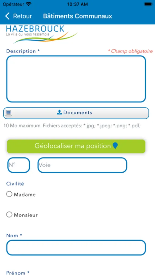 La ville d'Hazebrouck lance son application mobile et permet aux citoyens de devenir acteur dans l'amélioration du cadre de vie de la commune. Vous pouvez signaler un incident sur le périmètre de la commune portant sur la voirie, la propreté, l'éclairage, les espaces verts, la régie des eaux, ou les bâtiments communaux, et suivre sa résolution.