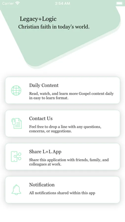 the Christian faith. Each day a push message will be sent to the user’s phone giving a brief description