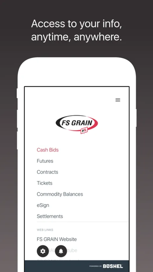 The FS GRAIN app is free, secure, and developed by the industry-leading Bushel platform.
