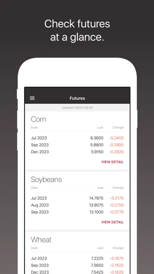 Futures: See Grains, Feed, Livestock, and Ethanol futures listed in order of your preference
