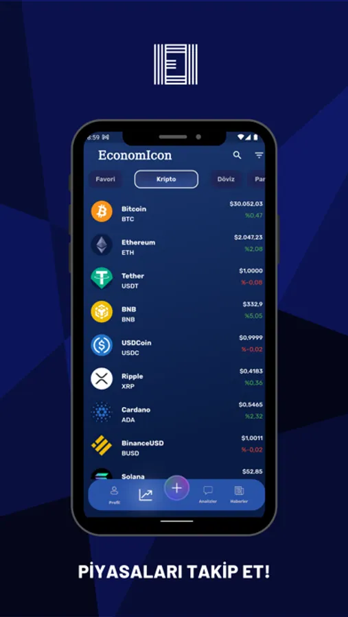- Yüzlerce kripto para anlık ve güncel fiyatlarını uygulamamızda takip edebilrisiniz. Bitcon(BTC), Ethereum(ETH), Tether(USDT), Cardano(ADA), Doge Coin(DOGE), Shiba Inu(SHIB), Stepn(GMT), Terra, Luna(LUNA), Ripple(XRP), Litecoin(LTC), Binance(BNB), Solana(SOL), Avalanche(AVAX) ve benzeri kripto paraların güncel fiyatlarını takip edebilir günlük, haftalık, aylık ve yıllık fiyat aralıklarını görebilirisniz. Ayrıca her varlık için kuruduğumuz sohbet (chat) odalarında istediğiniz kripto para, hisse senedi, döviz, ve altın için diğer yatırımcılar ile konuşabilrisiniz.