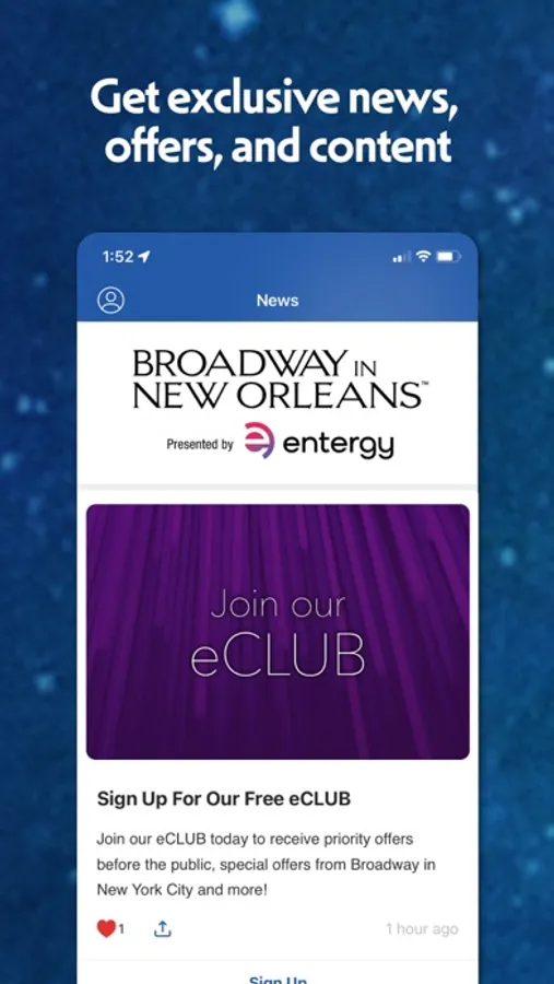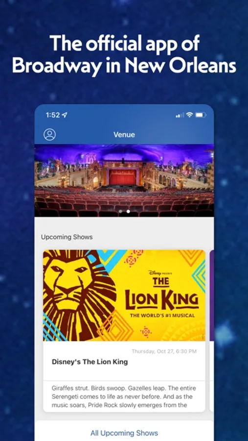 Broadway in New Orleans is pleased to share our new mobile app! With the aid of the app, you may now connect your Broadway in New Orleans account to access season and single tickets for Broadway in New Orleans shows at the Saenger Theatre for quick and easy entry into the theatre using your smartphone. You can also find helpful links to resources for planning their night at the theatre, purchasing additional subscriber tickets, purchasing presale tickets, making exchanges as a subscriber, and more!