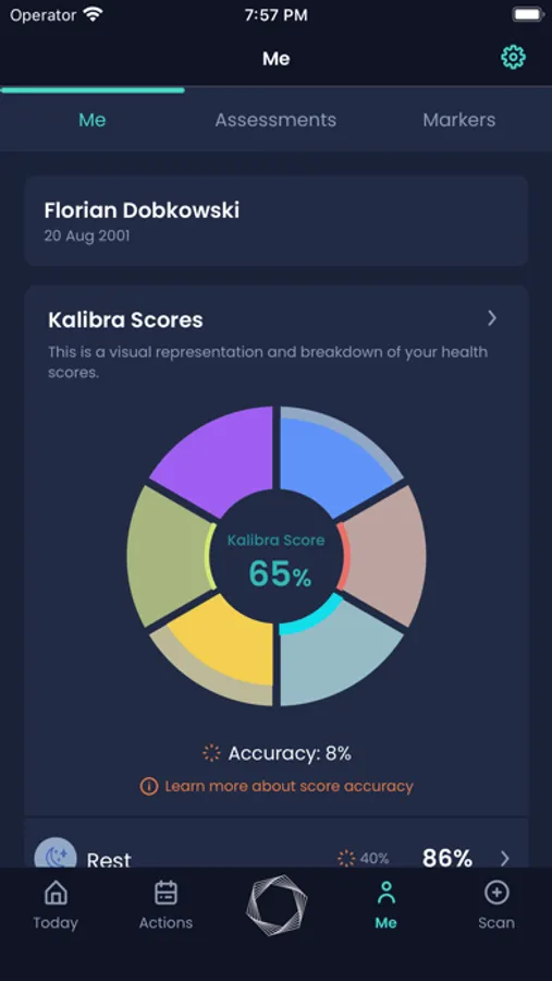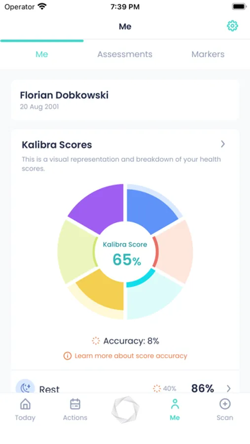 Kalibra is built on applying the methods of physical sciences to health—quantifying and analysing health markers through precise diagnostic measurements, advanced data analysis methods, machine learning, and inferential statistics. Kalibra uses Apple Health integration to help you achieve a healthy balance between the physical, mental and social aspects of your health, and targets effort and attention where you need it most.