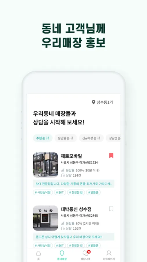 · 우리 매장의 정보를 보여주고 쉽게 상담(채팅)이 가능토록 지원합니다.