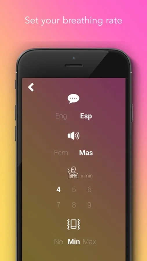 * You can set the breathing rate with the assistance of a voice guidance or by switching to the vibration setting on your device so you can keep your eyes closed.