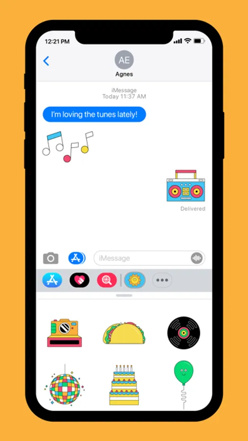 Choose from forty (40!) colorful animated line-art images as you recall the joys of yesteryear and today in all your text convos!