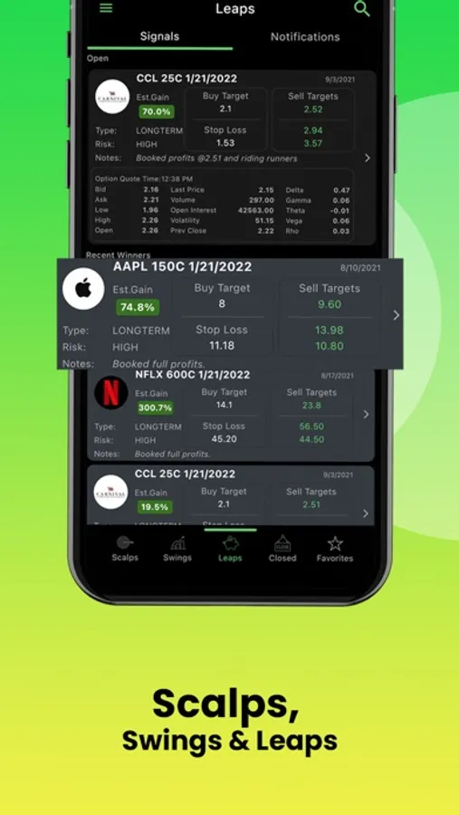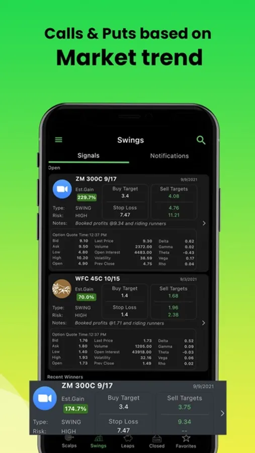 Option Signals App sends real time push notification signals to find what Option contract to buy , when to buy and at what price, when to sell and at what price.