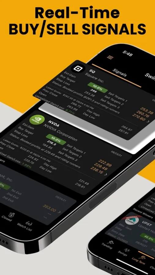 Stock Signals App sends real time push notification signals to find which Stock to buy , when to buy and at what price, when to sell and at what price.