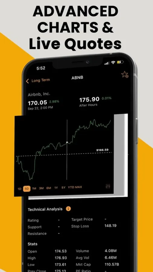 → Search live quotes, charts and details of any stock ticker within the App.