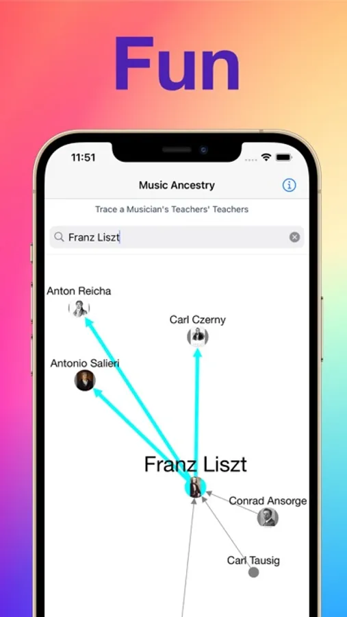 • Make use of an extensive database: Our app boasts an ever-expanding collection of music teachers' lineages, connecting you to centuries of musical history.