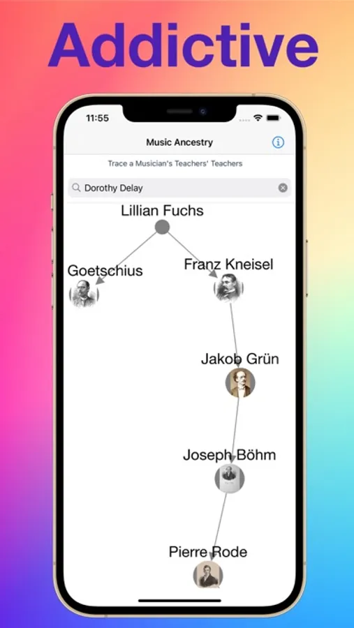 What makes Music Ancestry truly addictive, fun, and interactive is its user-friendly interface, suitable for all ages and instruments. With just a few taps, you'll be tracing these musical lineages, discovering surprising connections, and gaining a deeper understanding of these important roots.