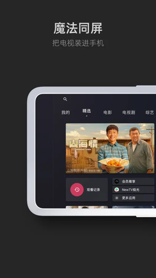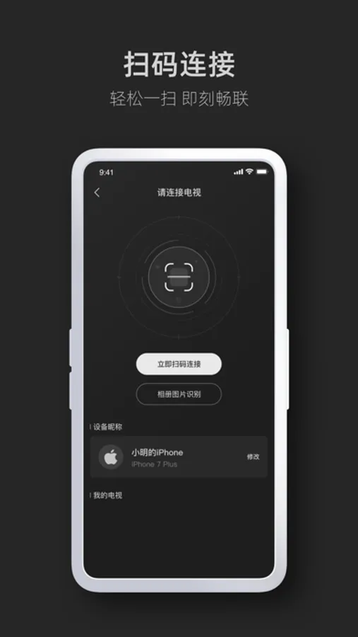 宣传文本:手机畅联,电视用户首选设备遥控app;不需要在同一个Wi-Fi下,也可以使用;全新暗色系UI,给你最好体验。
