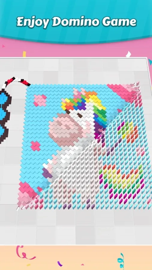 CREATE AMAZING ART! Fill picture with colorful dominoes, enjoy the ASMR effect of domino falling, rotate the canvas to get different coloring experience.