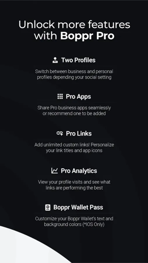 Functionality is a core value for Boppr. Boppr Direct allows you to share just the first app in your Boppr profile. Easily move around your icons by dragging and dropping.