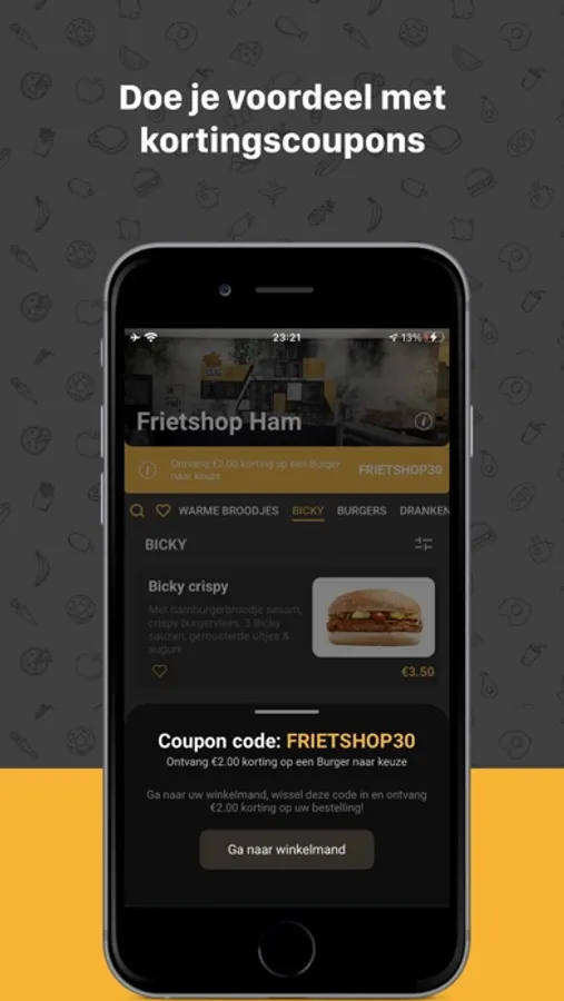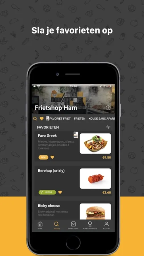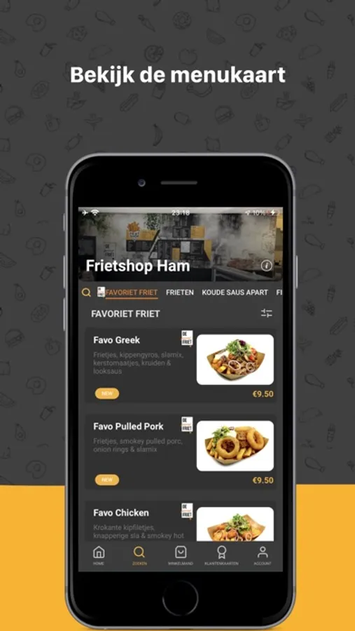Bestel in een handomdraai een heerlijke favo friet, smakelijk broodje, burger of salade met de Frietshop Ham app!