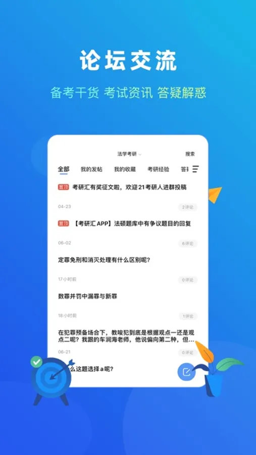 法题库APP是由北京智汇帮教育科技有限公司开发打造的针对法学生的考试和学习平台。涵盖了法硕法、法硕非、法律职业资格考试(法考)、考研政治和考研英语真题题库。除题库外,本应用还开发了题单、课程、课单、论坛、经验等模块,功能强大、匠心汇聚,为法学生提供高质、高效的学习、交流平台!
