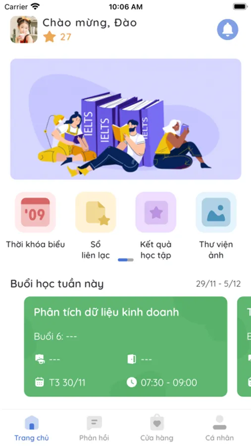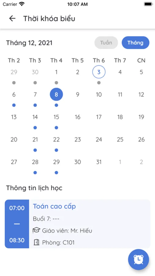 2. Lịch học - Bảng thời gian cố định cho mỗi lớp có thể được xem qua tùy chọn này.