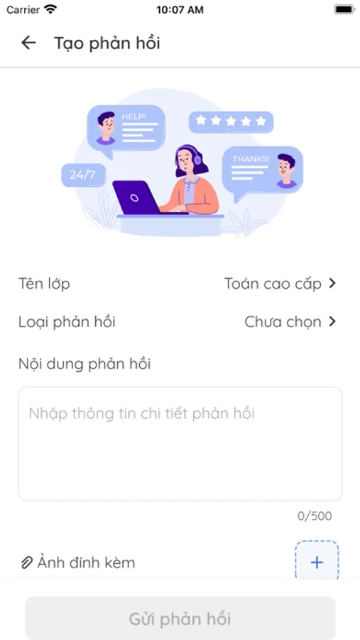 4. Khiếu nại - Người dùng có thể gửi các thông báo, phản hồi đến đơn vị giáo dục. Nội dung thông báo sẽ được phản hồi tự động qua ứng dụng