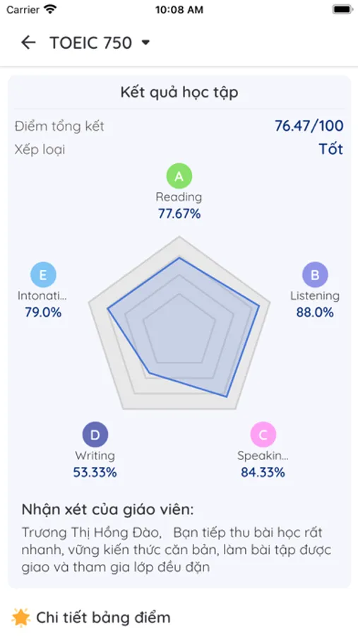 Ứng dụng này cho phép phụ huynh và học viên nhận thông báo về tiến trình học tập tại các trung tâm Ngoại ngữ, Kỹ năng