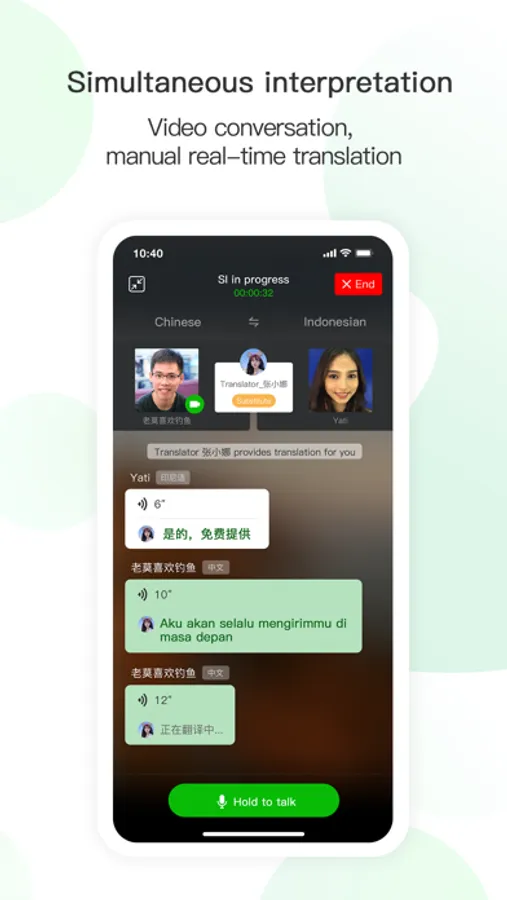 -Multilingual translation: Support mutual translation between Chinese, English, Indonesian and other popular languages, covering common language pronunciation services.