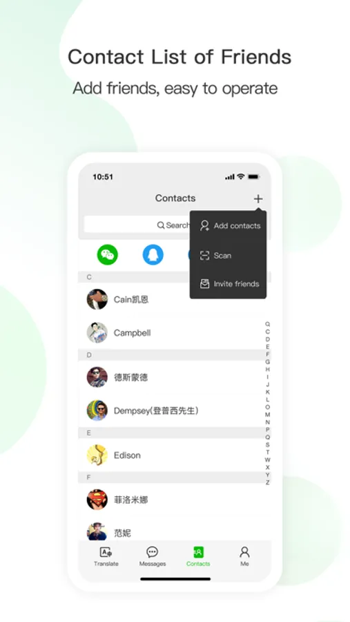 -Chat messages: Send and receive friend messages anytime, anywhere, support sending video, picture, text and voice messages.
