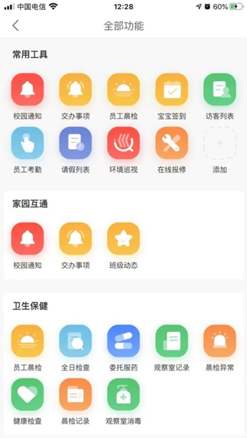 园务通主要帮助老师进行日常园务的数字化管理。包含园所管理、签到考勤、健康检查、教务管理、行政巡检等多个模块。实现智慧幼儿园管理的全面赋能