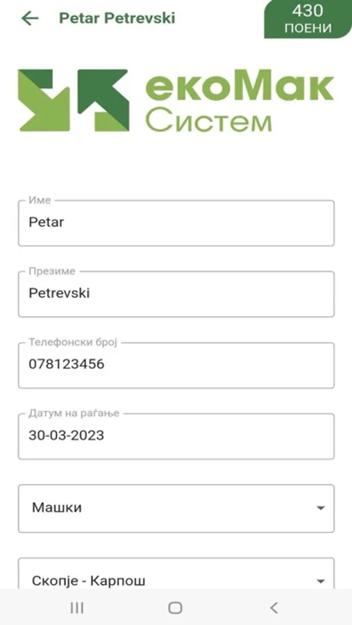 Екомак е иновативен систем за селективно собирање отпад по пакување и анализа на дата за ПЕТ пластики и лименки. Апликацијата дозволува на корисниците да собираат поени и да ги користат поените во маркети како ваучери. Таа е дел од поголем екосистем каде корисникот ја користи апликацијата да се автентицира со вендинг машина и собере поени за отпадното шише.
