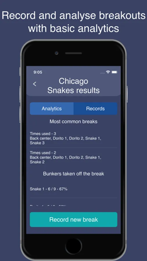 Break analytics is a simpler version to record just the breaks to understand where opponents are running at the start of each point.