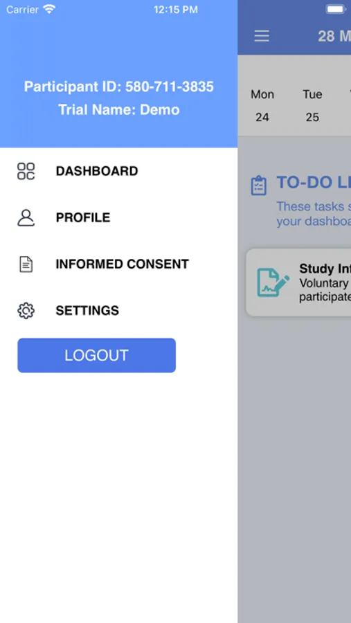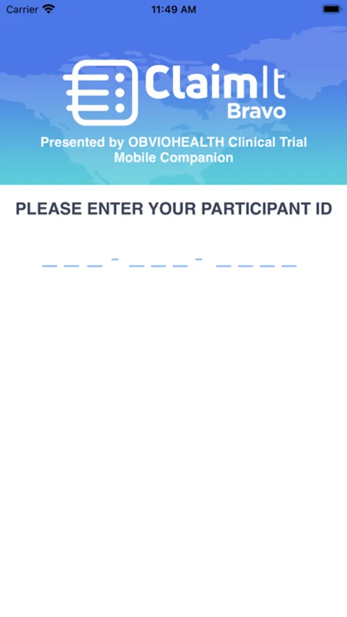 Subjects create a ClaimIt Bravo account and complete the Informed Consent process. A series of screens explains the parameters of the study, including:
