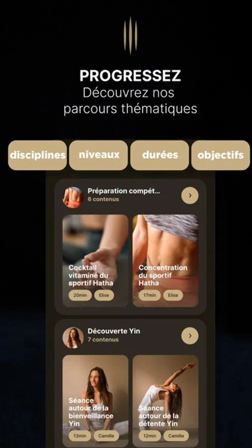 • Des parcours de A à Z : pour accompagner les débutants, soulager le mal de dos…. Un accompagnement pensé pour répondre à vos besoins.