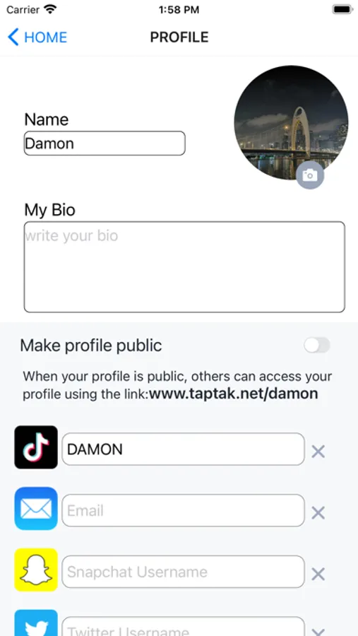 Contactless sharing application for your social networks, email and telephone contact. All your information in one click. Get your digital business card now!