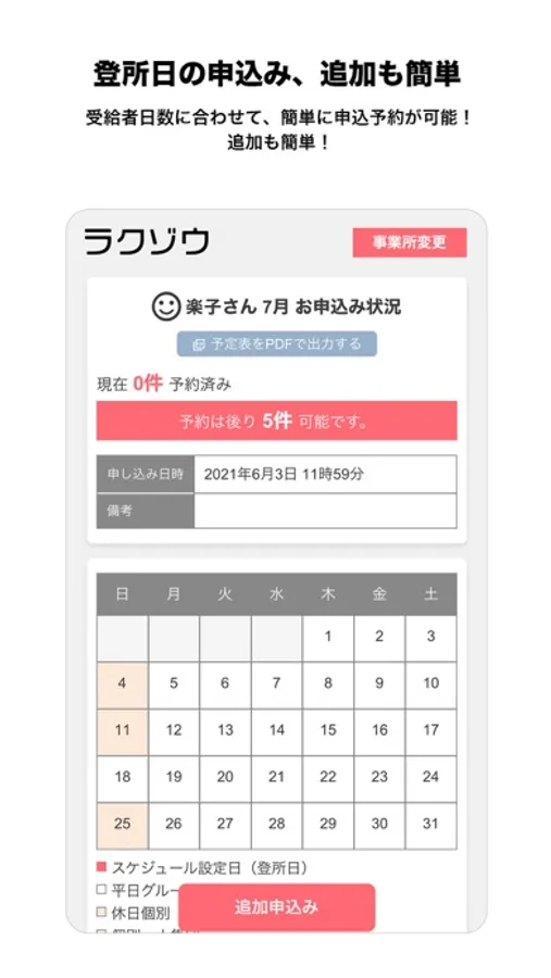 毎月の登所日をかんたん予約できます。