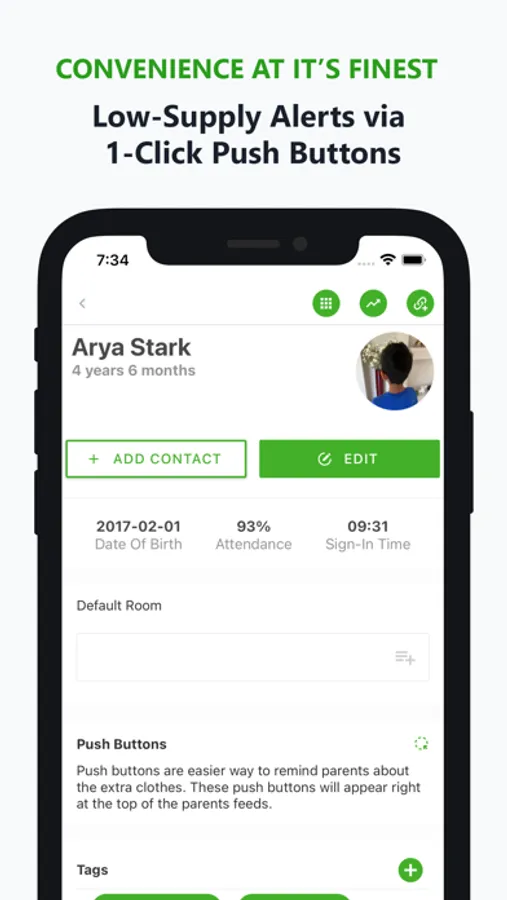 It’s never been easier to notify parents, when you are running low on diapers, back-up clothes and other supplies. Easily Send low-supply alerts to parents via 1-click push buttons
