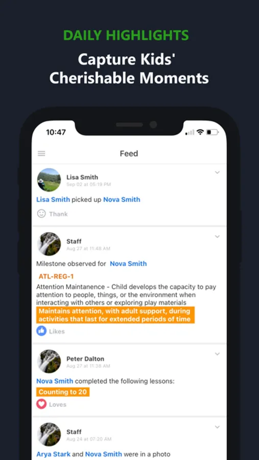 Activities are the best way to share updates with parents. You can easily share daily activities such as meals, photos, milestones, lesson completion, announcement, health check and many more.