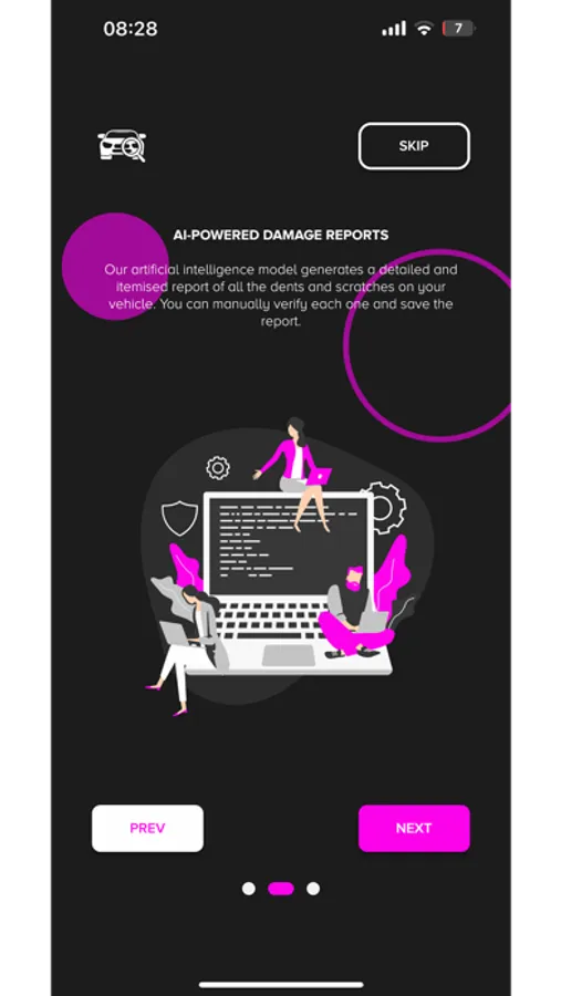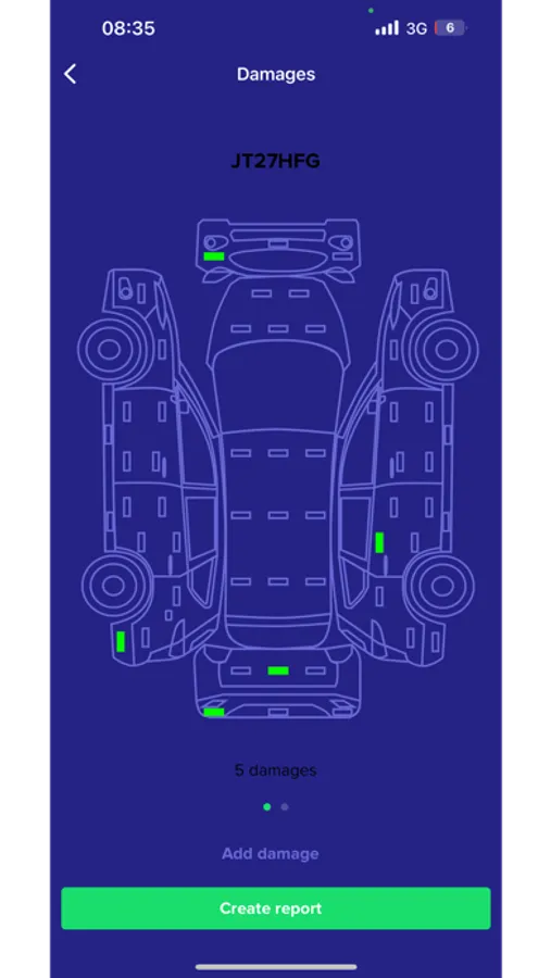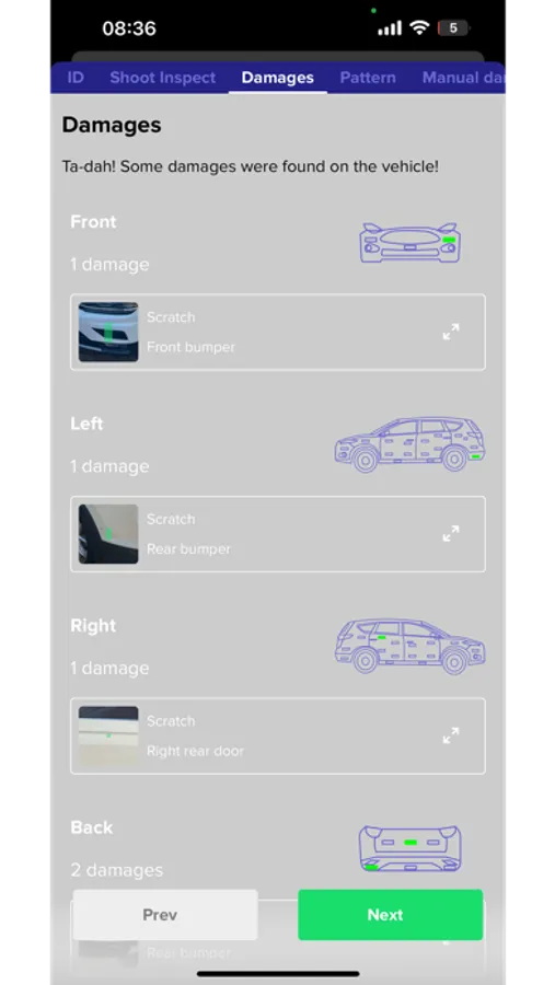 - The final report includes a map of the car with the damages marked and each damage includes a zoomed photo and damage-type description.