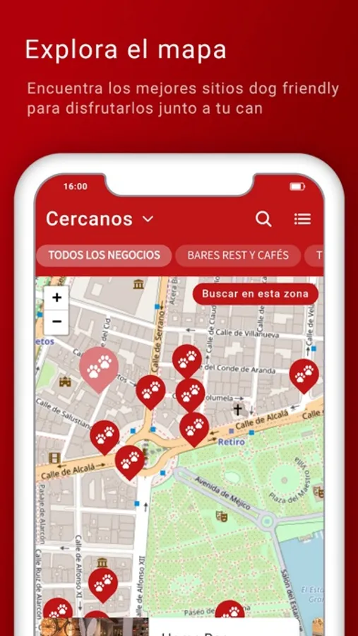 • Buscar y filtrar diversos sitios y negocios perrunos cerca de ti o en otros puntos de España.