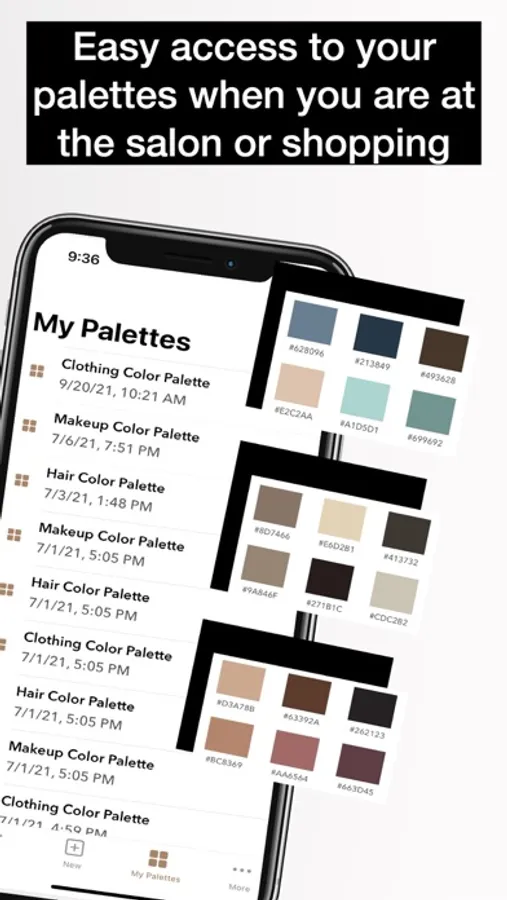 * Choose from Clothing, Hair and Makeup personalized color palettes