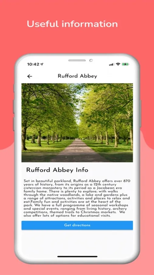 Tag in the park - Rufford Abbey provides a complete interactive experience around the country park. The app includes an interactive location based treasure hunt where you must walk around the park to find the various locations. Once you find a location you must complete an interactive task to earn points including location based quizzes, AI-based scanning objects with your camera or tapping your phone on hidden tags.