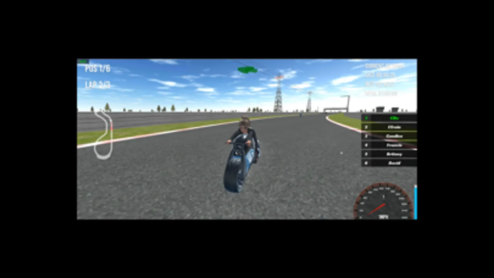 Meet the 5 sexy female racers Delia blonde, Angel, Sasha, Jessica, and Eli. Race cool race motorcycles or concept futuristic style bikes. Great riding race track with fast curves. New and improved futuristic garage.