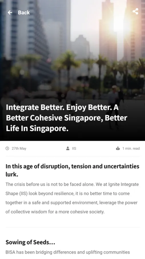 Ignite. Integrate. Shape Singapore App is an guider for volunteer to get latest information and access to support during the event.