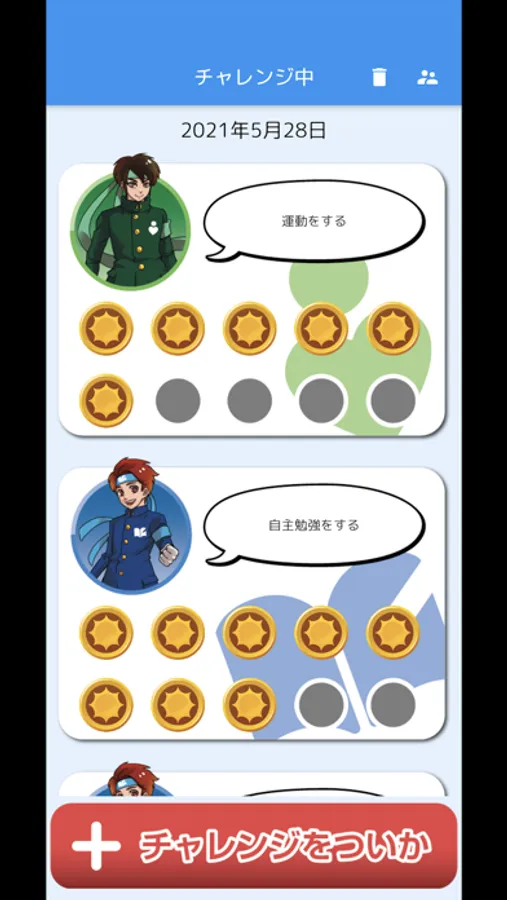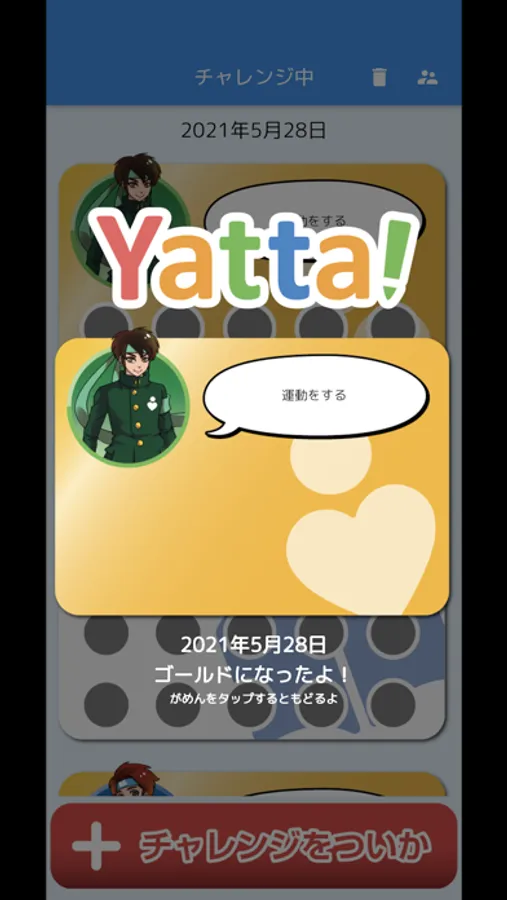 目標はチャレンジカードとなり,リストに表示されるので,自分のチャレンジを常に確認することができます。