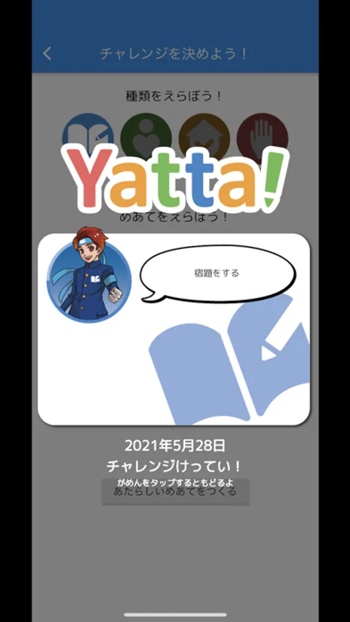 Yatta!は,こどものチャレンジする気持ちやがんばりを表出し,達成(Yatta!)を応援するアプリです。