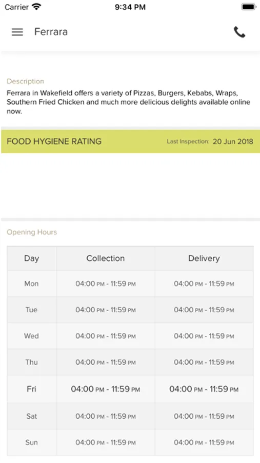 Thank you for visiting Ferrara in Wakefield. We hope you enjoy our online ordering app and your food.