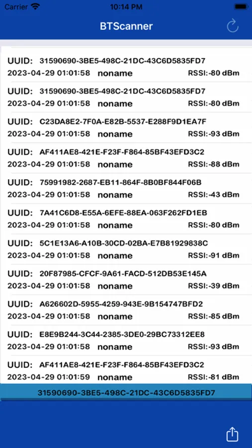 周囲に飛び交っているBLE通信を取得し、リスト化します。