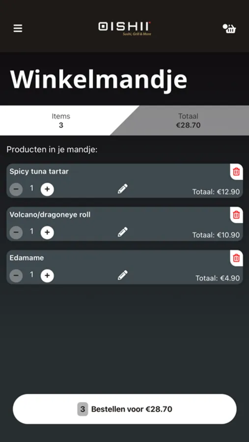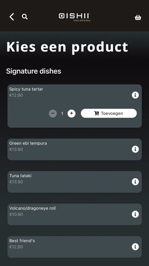 Waar u ook bent, met de app van Oishii - Sushi, Grill & More kan u zonder zorgen bestellen uit het uitgebreide assortiment.